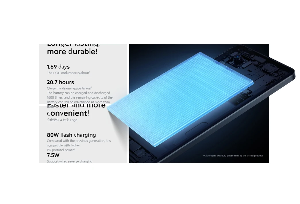 Батарея місткістю 6000 мА·год забезпечить тривалий час роботи пристрою, а підтримка швидкого заряджання на 80 Вт дасть змогу швидко відновити заряд. Вам не потрібно турбуватися про часте підзаряджання навіть за активного використання смартфона.